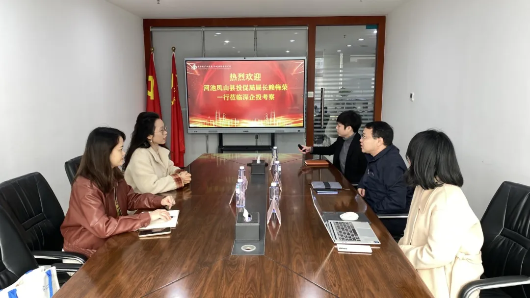 日前,广西河池市南丹县项目代办中心主任黎玉林、凤山县投资促进局局长赖梅荣等莅临深企投考察交流。
