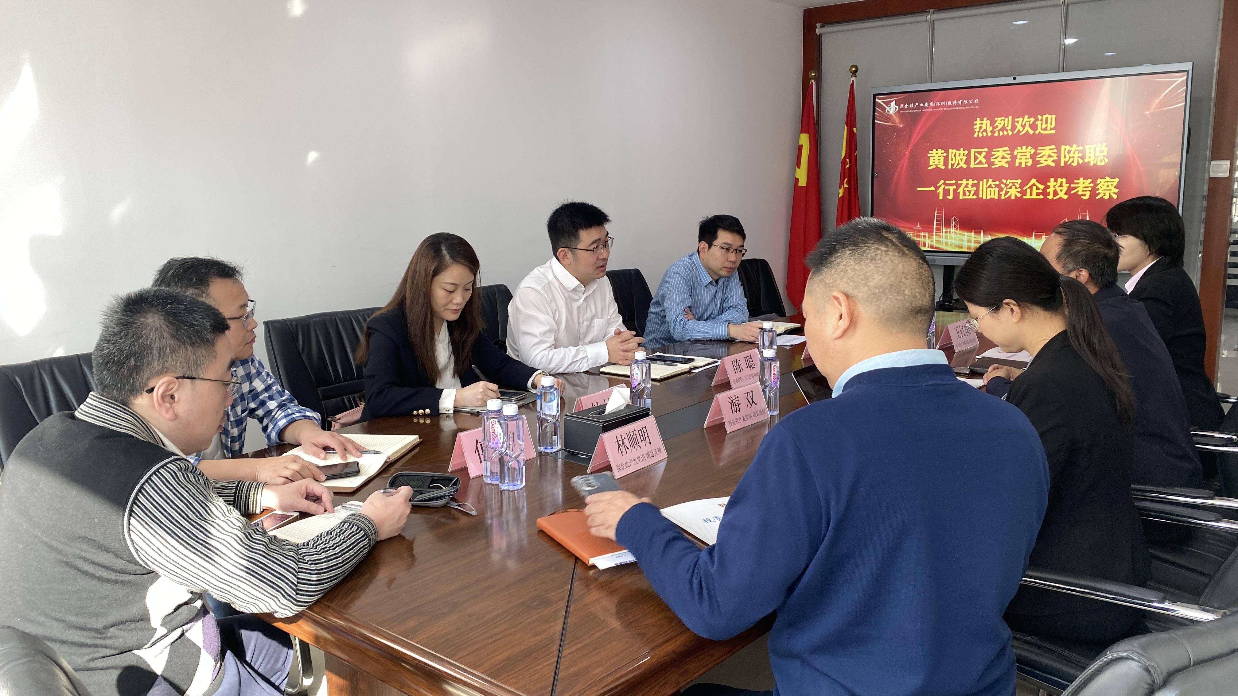 参与此次座谈的还有黄陂区区政府办副主任姚维坤、区商务局副局长韩怡泓、区驻大湾区招商分局局长傅伟、区商务局招商干部曹琛;深企投副总经理林顺明、游双,产业咨询部总经理王红阳等。