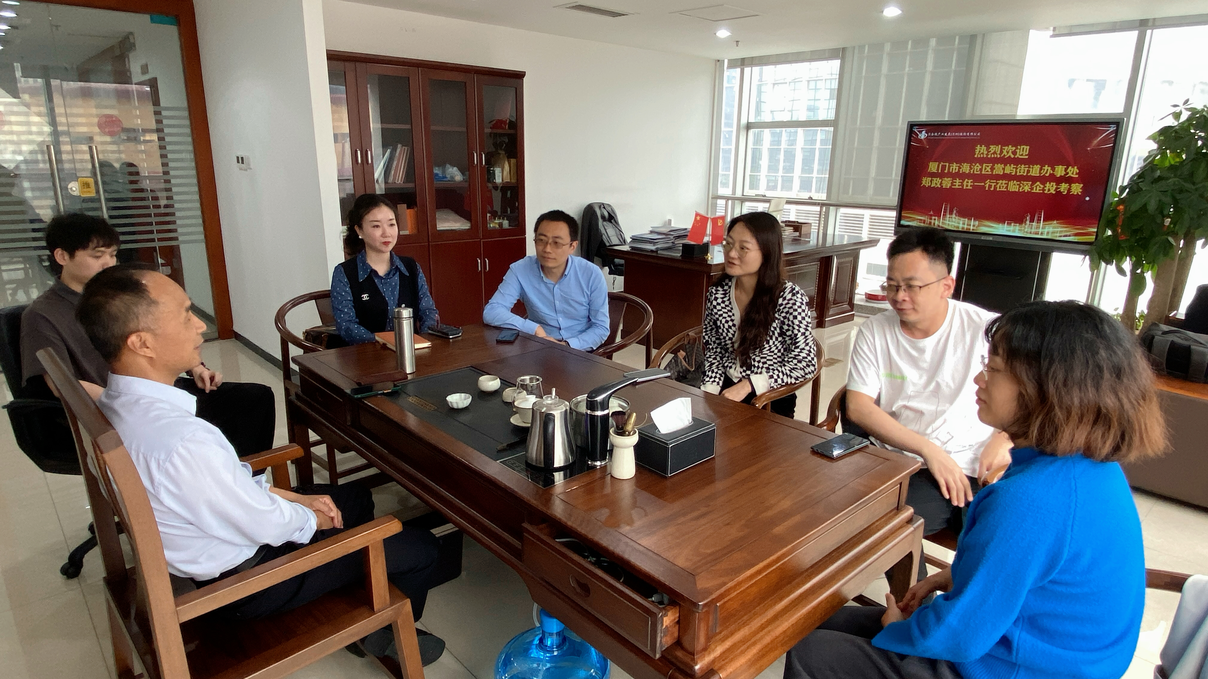 2025年3月14日,厦门海沧区嵩屿街道党工委副书记、办事处主任郑政蓉 (正处级)一行莅临深企投考察交流,受到深企投董事长聂仰禄的热情接待。双方围绕区域经济发展、产业投资合作等议题展开深入交流,共探合作新机遇。