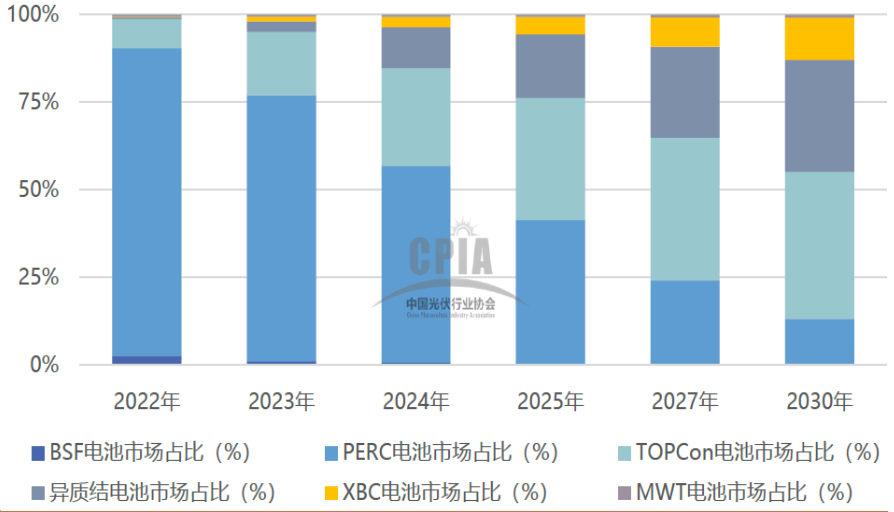 图3 光伏电池技术占比变化及预测