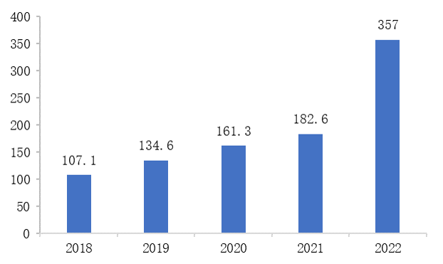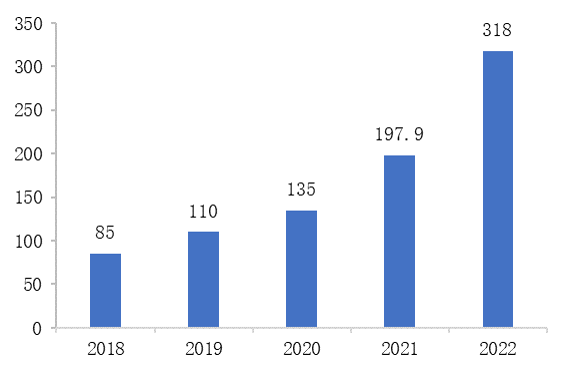 图10 2018-2022年中国硅片产量情况(GW)