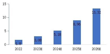 图13 2022-2026年全球GaN功率元件市场规模(亿美元)