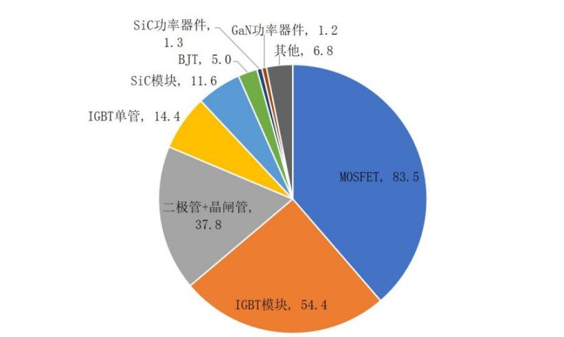 图6 2022年全球功率器件各产品市场规模预测(亿美元)