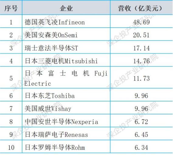 表7 2021年全球功率半导体主要企业营收