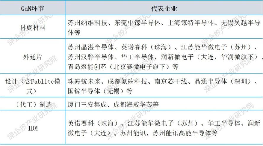 表6 国内GaN功率半导体产业链代表企业