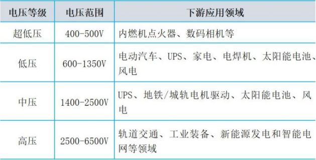 表4 IGBT产品电压等级及对应下游领域