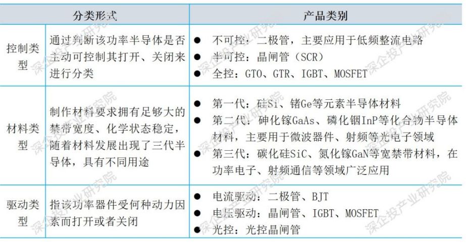 功率半导体还可按照控制类型、材料特性、驱动方式进行分类,具体如下: