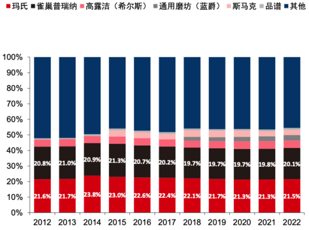 图9 2012-2022 全球宠物食品竞争格局