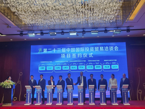 2023年9月7日下午,第23届中国国际投资贸易洽谈会龙岩市投资项目推介会在厦门举行。会上,深企投引荐到龙岩高新区(经开区)的2家企业上台签约,其中1个外资项目——总投资1.1亿美元的半导体及新能源功率器件生产项目;1个内资项目——总投资5亿元的三维储能电池项目。龙岩市委副书记、宣传部部长杨溢,市政府副市长简洪坤和各县(市、区)主要领导,200余位嘉宾、客商参加此次推介会。