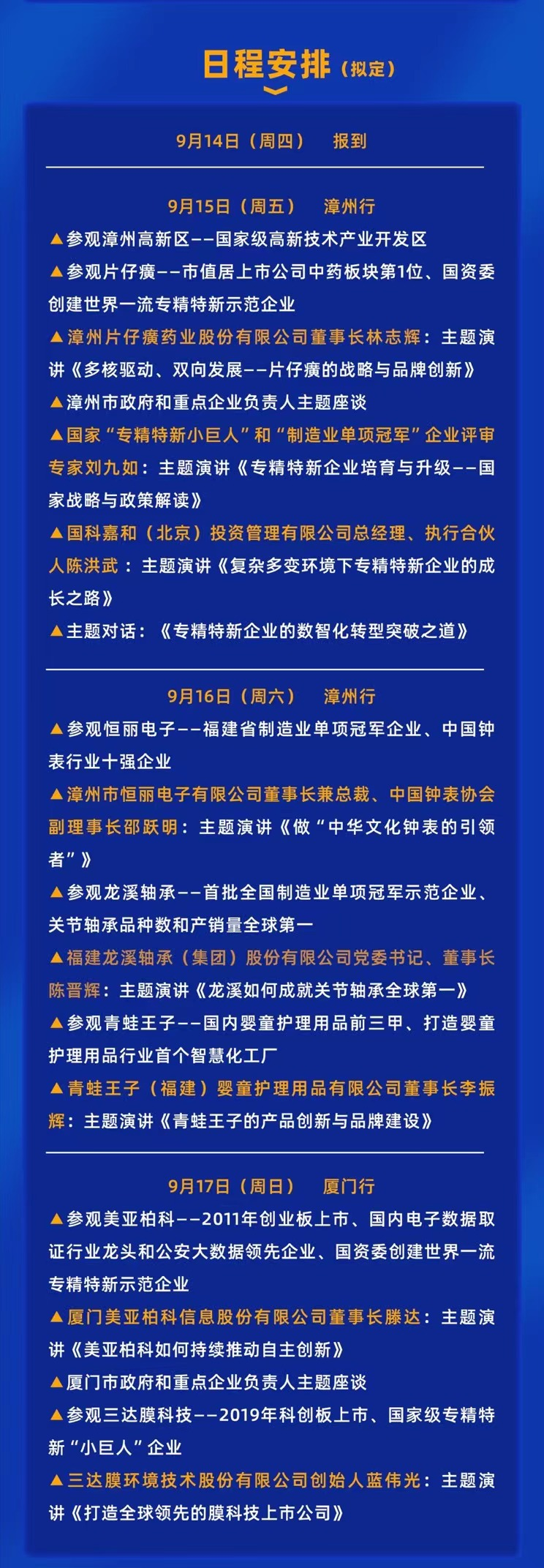由国家发展改革委宏观经济杂志社、厦门市人民政府、漳州市人民政府主办,中国经贸导刊理事会、厦门市工业和信息化局、漳州市工业和信息化局承办,深企投产业研究院协办的《“融通攀升·敢拼会赢”中国专精特新企业福建研学行》活动拟定于2023年9月15日-17日举行。届时来自全国的有关领导、专家、优秀专精特新企业家将汇聚海峡西岸,参访行业龙头企业和高成长新兴企业,对话地方政府和产业园区负责人,促进相互了解和友好合作。作为协办方,深企投也将积极依托自身资源,邀请大湾区优秀专精特新企业共同参加此次活动,推动大湾区企业与漳州、厦门等地政企开展多维度的产业合作。