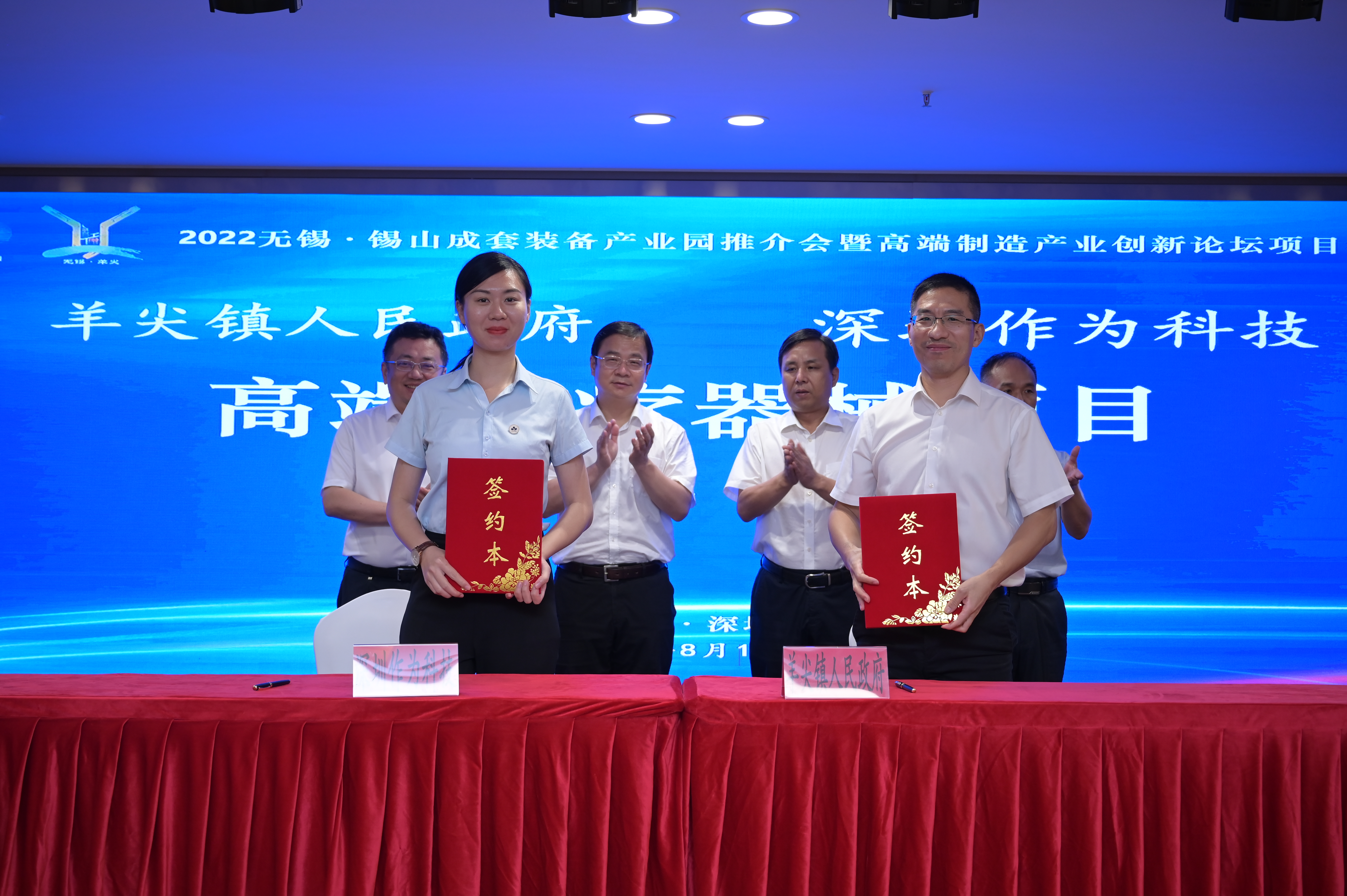 2022年8月16日,由无锡市锡山区羊尖镇人民政府主办,无锡市锡山区人民政府驻深圳招商组、深企投产发集团联合承办的“2022无锡·锡山成套装备产业园推介会暨高端制造产业创新论坛”在深圳成功举行。围绕锡山成套装备产业园的重点招商方向,深企投精准邀请了粤港澳大湾区高端装备制造产业领域的20余家行业内骨干企业参会,现场签约项目6个,总投资额24亿元。