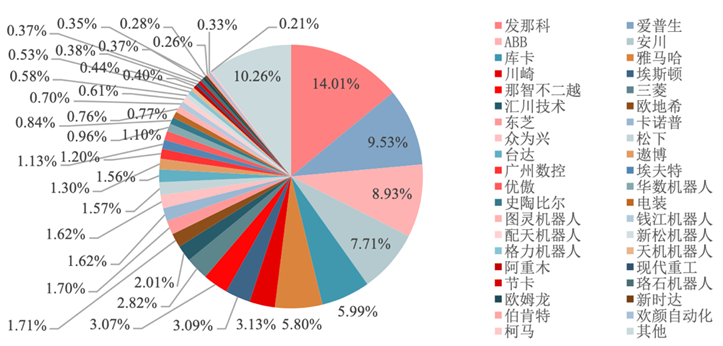 图9 2020年中国工业机器人市场份额(以出货量计)