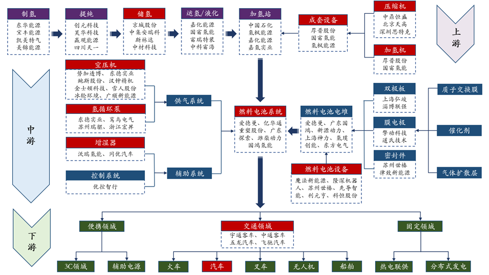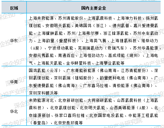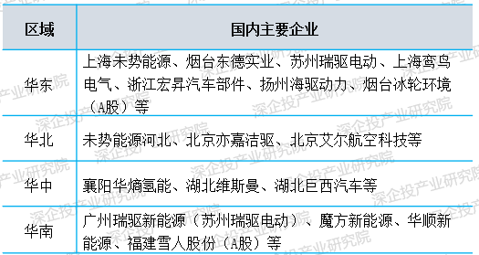 图2 我国氢能源产业链重点企业