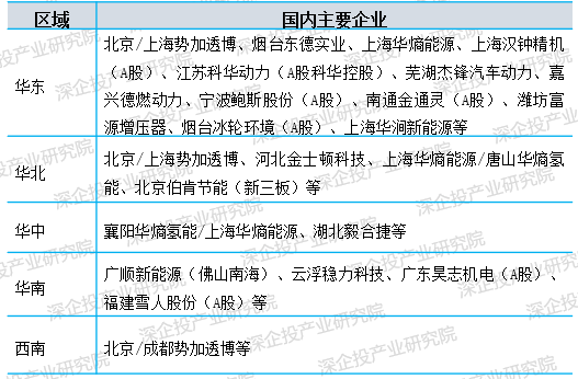 我国氢循环系统主要企业如下表所示。