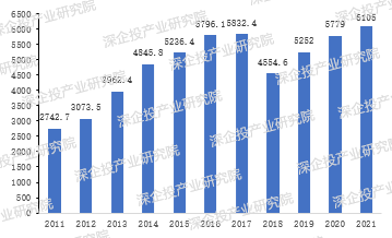 图3 2011-2021年中国铝材产量(万吨)