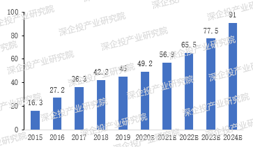 镁合金材料市场规模。根据头豹研究院数据,我国镁合金材料在新能源汽车行业的带动下迅速发展,市场规模由2015年的16.3万吨上升至2019年的45万吨,预计未来在“十四五”规划期间,仍将保持稳定增长趋势,在2024年市场规模达到91万吨,如下图所示: