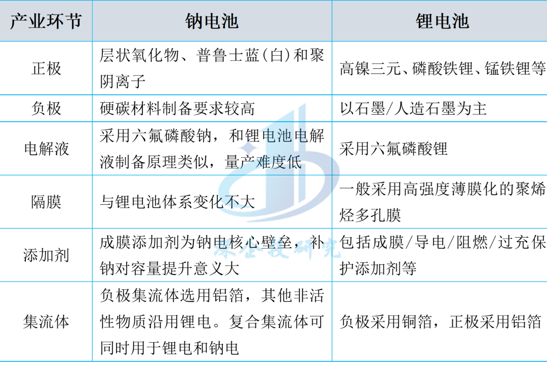 ——集流体。钠离子电池负极集流体选用铝箔,成本仅为铜箔的一半,布局的企业包括鼎盛新材、东阳光、万顺新材、南山铝业等。正极集流体则与锂电产业链相同。