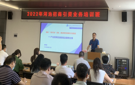 近日,由河池市投资促进局主办的《2022年河池招商引资业务培训班》在河池韦拔群干部学院开班授课。深企投董事长聂仰禄、产业研究院常务副院长李星光受邀分别为全体河池市招商系统干部作“围绕‘六新河池’目标,建设绿色发展先行试验区——产业招商方法、技巧及实务”、“精准招商方法论及产业链招商策略”专题教学培训。