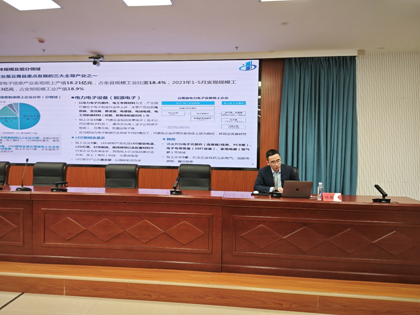 2023年12月5日,云霄县清洁能源、电子信息、食品制造三大主导产业招商策略汇报会在县新图书馆会议室召开,深企投产业研究院院长林和坤进行项目成果汇报。会议由县工信局局长陈跃溪主持,云霄县委常委、统战部部长肖华顺,副县长汤永坚,林治柑,云霄县政协副主席郭玲等三大产业链链长及副链长听取汇报。县委人才办、县政府办、云陵镇、莆美镇、东厦镇、火田镇、陈岱镇、列屿镇、下河乡、马铺乡、和平乡、开发区、发改局、工信局、应急局、农业农村局、海洋渔业局、林业局、财政局、自然资源局、云霄生态环境局、水利局、城管局、教育局 、人社局、住建局、交通运输局、市场监督管理局、统计局、税务局、行政服务中心、人民银行、贸促会、核蓄办、县供销社、工商联、供电公司、圣城集团、产投集团等三大产业链“链长制”成员单位分管领导参加会议。