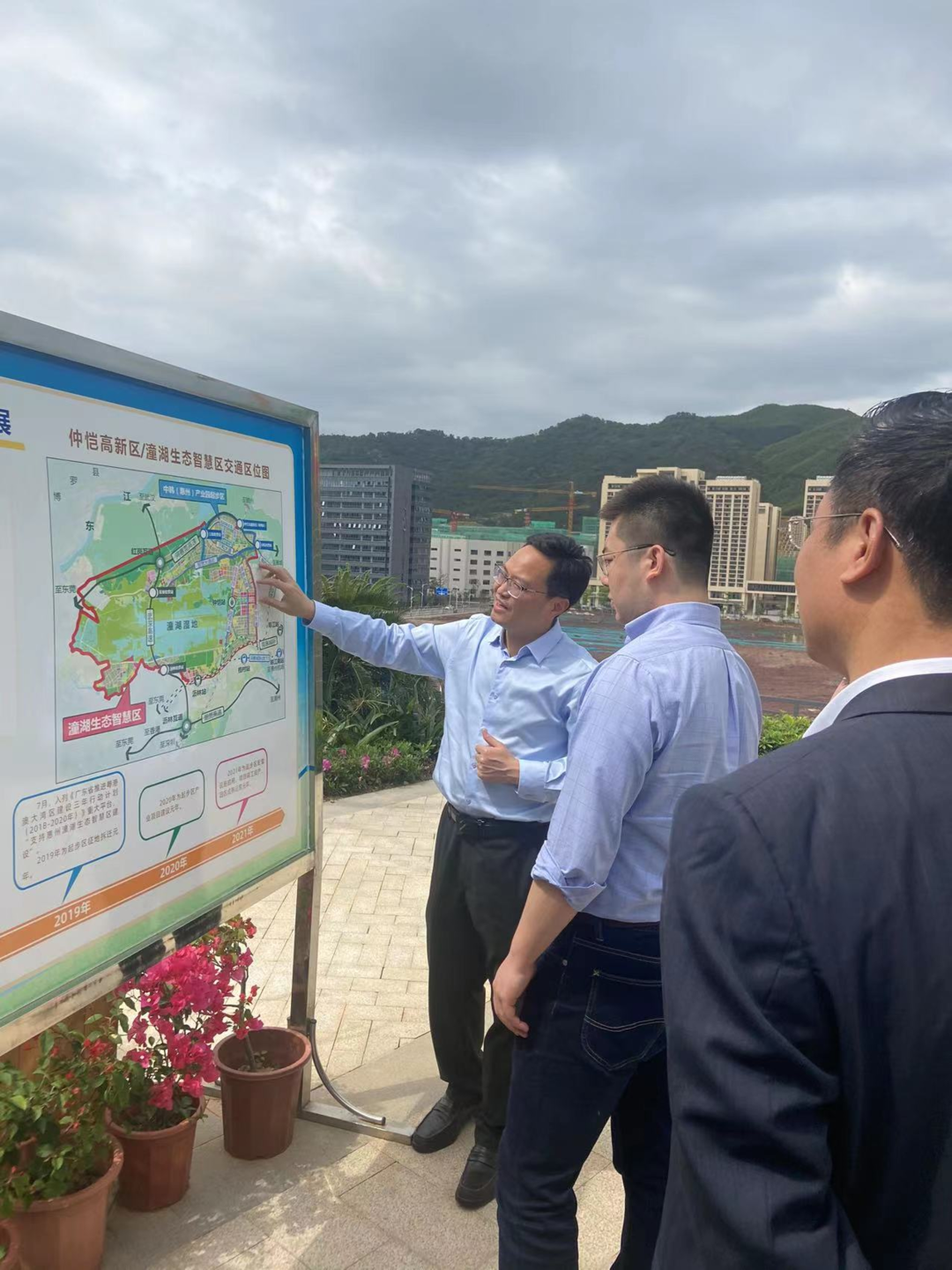在潼湖生态智慧区领导的陪同下,考察团一行先后来到政府展示中心、拟选址地块、智慧园区,实地勘察地块现场条件、土地资源、区位交通、周边配套设施等投资环境以及企业前期所需用到的过渡性厂房等情况。