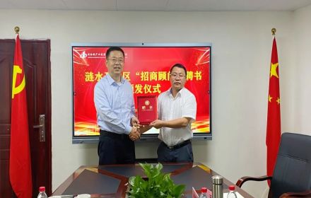 会后,江苏淮安市涟水县县委常委、江苏涟水经济开发区党工委书记王伟为深企投总经理陈小剑颁发“招商顾问”聘书。