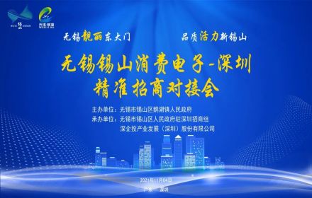 2021年11月05日,由无锡市锡山区鹅湖镇人民政府主办,无锡市锡山区人民政府驻深圳招商组、深企投产业发展(深圳)股份有限公司承办的“无锡锡山消费电子-深圳精准招商对接会”在深圳成功举行。