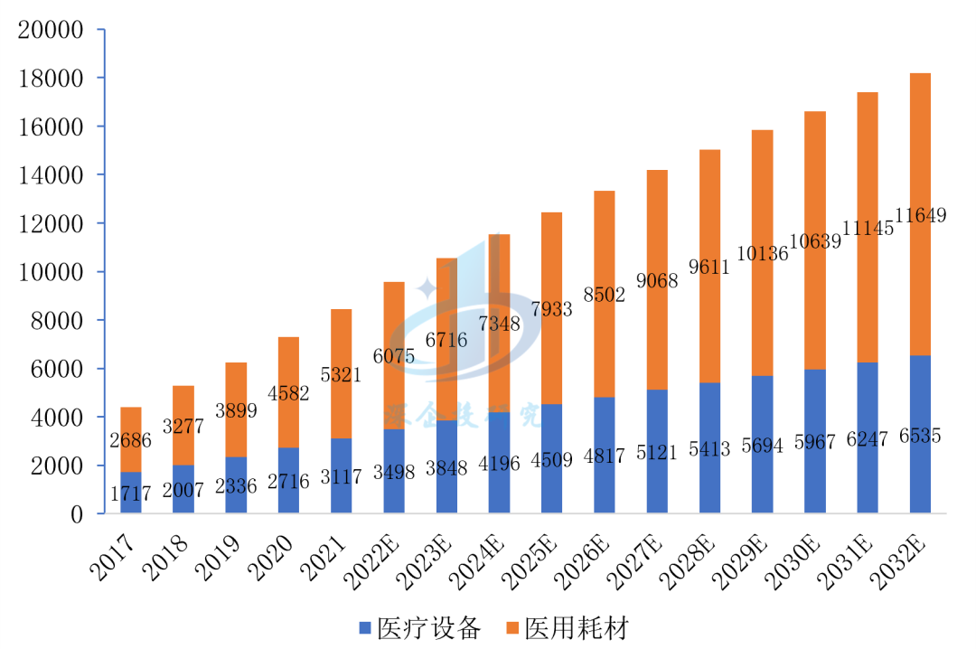 图6 2017-2032年我国医疗器械市场规模(亿元)
