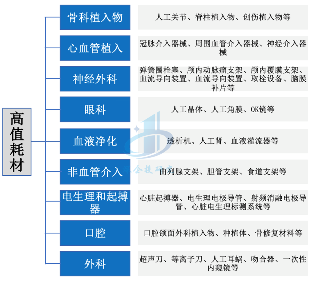 图2 高值耗材分类及代表产品