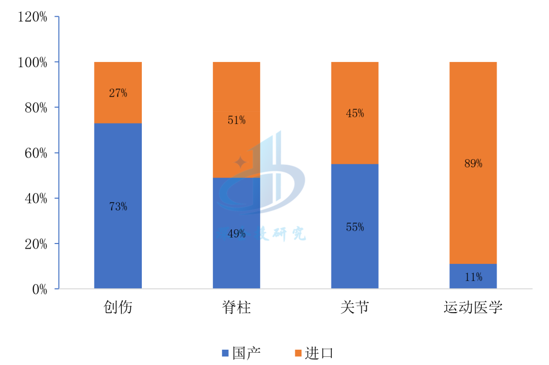 图17 2022年骨科植入物细分市场国产替代情况
