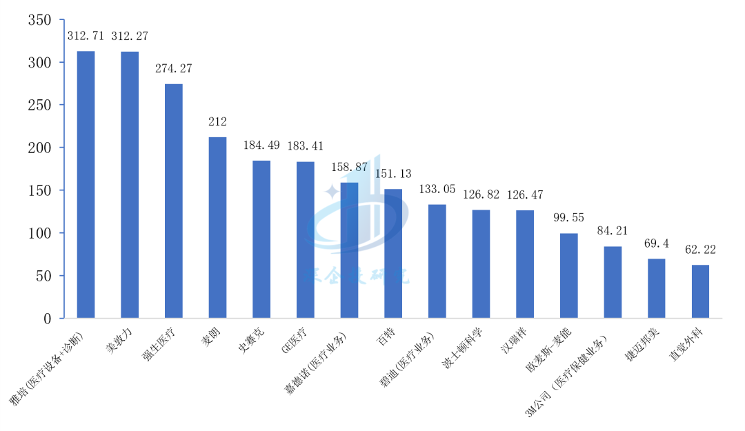 资料来源:医疗器械行业网站Medical Design & Outsourcing《2023年全球医疗器械公司百强榜》,深企投产业研究院整理。各企业统计口径不一。