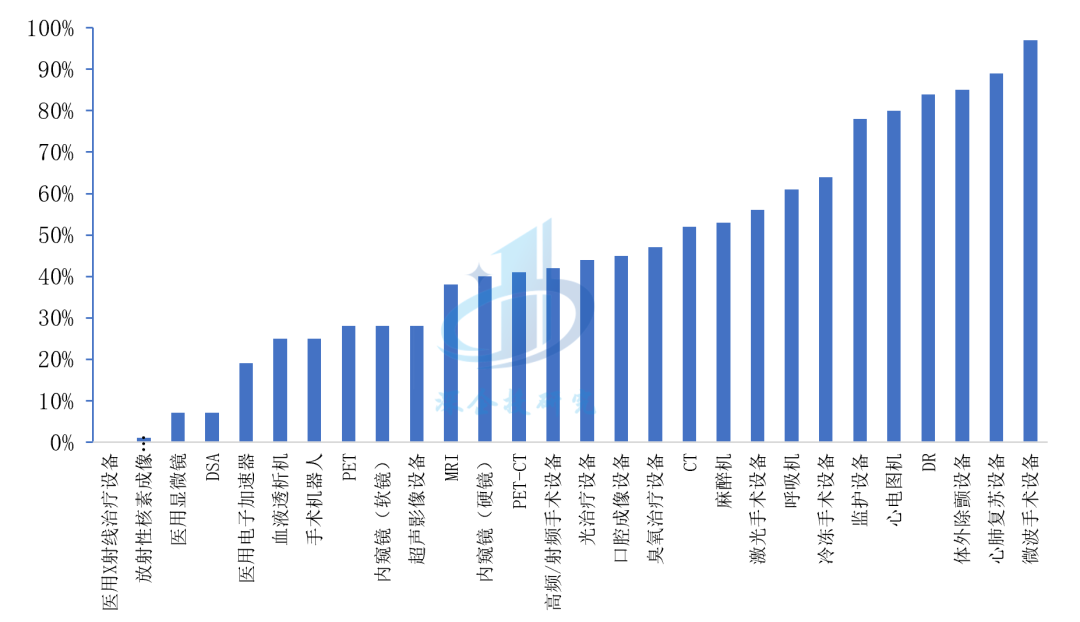 图16 我国医疗设备细分市场国产化率