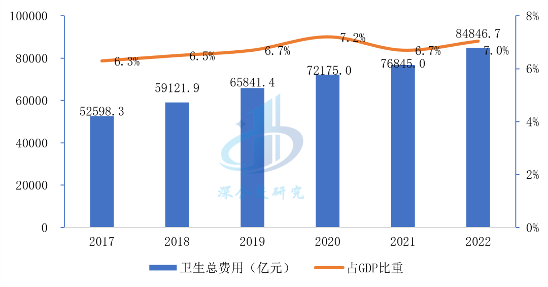 图10 2017-2022年我国卫生总费用及占GDP比重