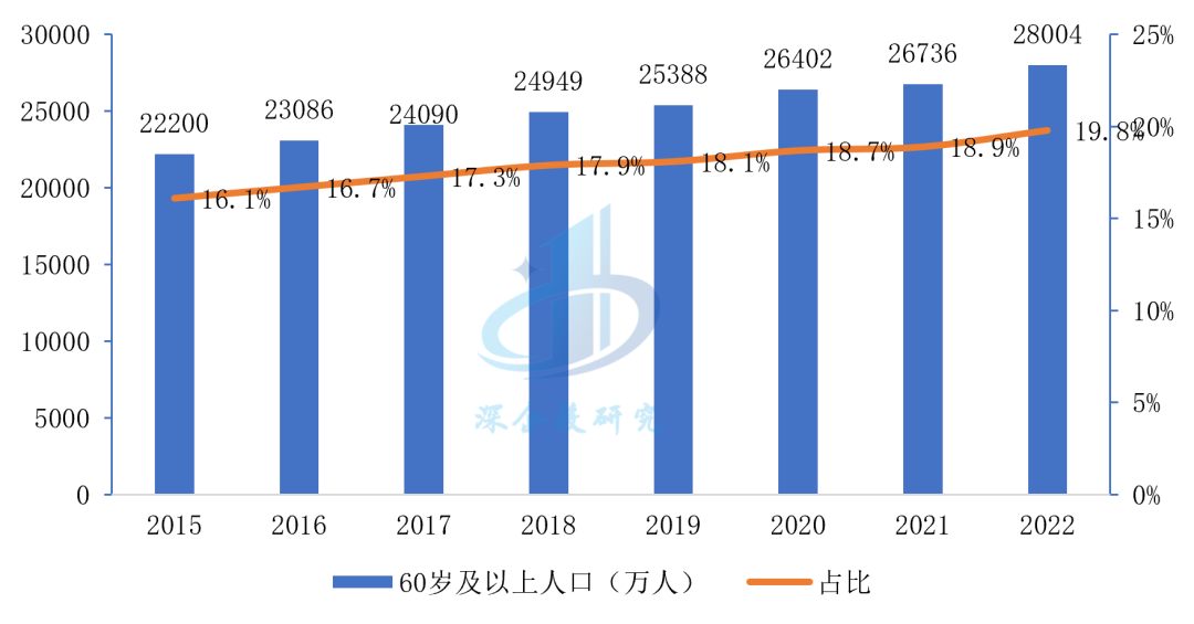 图9 2015-2022年我国60+人口占总人口比重