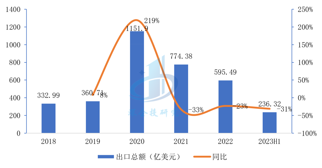 图8 2018-2023年上半年我国医疗器械出口情况