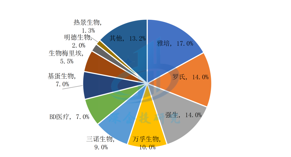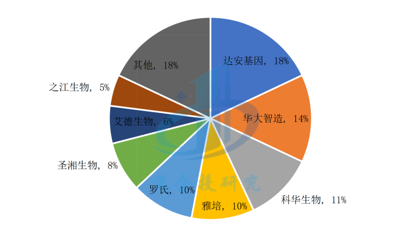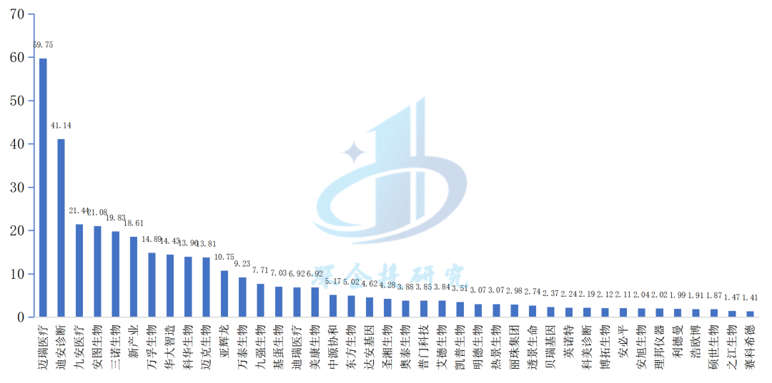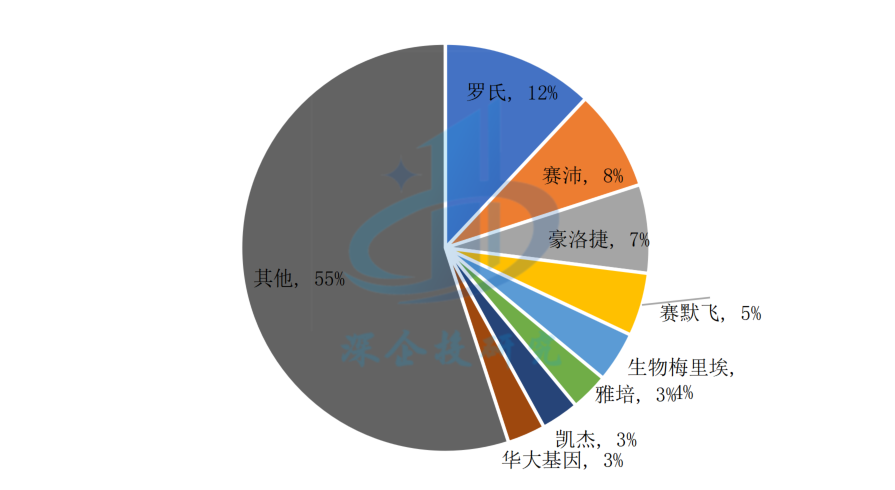 资料来源:各公司半年报,深企投产业研究院整理。主要计算体外诊断试剂、仪器的收入,部分包含生物原料收入,一般不含医学检测、第三方检测服务。