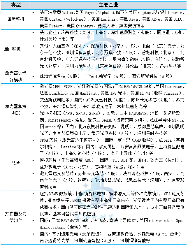表3 全球及我国激光雷达产业链重点企业