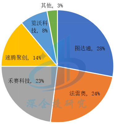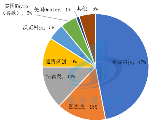 图6 2022年全球乘用车和轻型车激光雷达市场份额(按出货量)