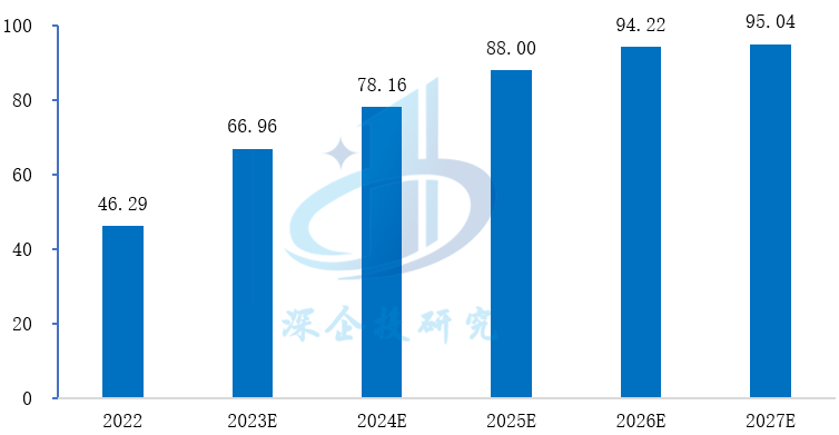 图4 2021-2027年我国乘用车激光雷达市场规模(亿元)
