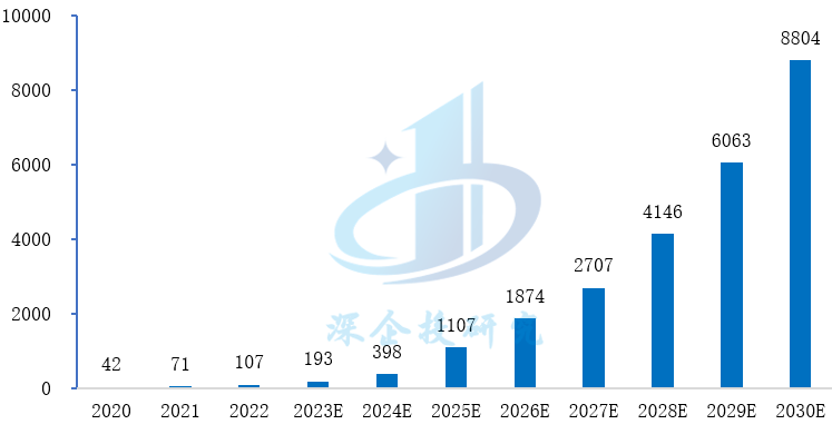 图3 2020-2030年全球激光雷达硬件市场规模(亿元)