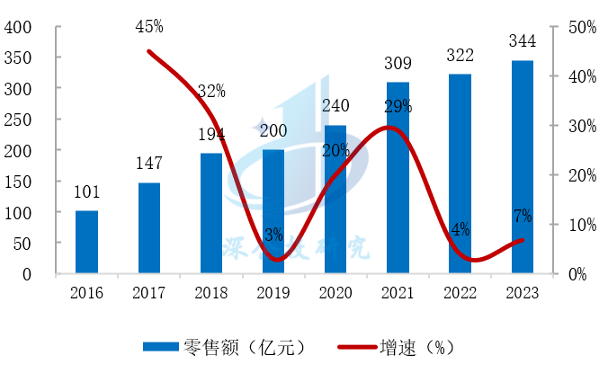 图4 2016-2023年中国扫地机器人零售额及同比