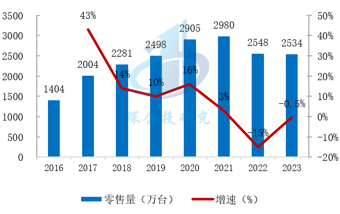 图3 2016-2023国内清洁电器零售量及同比