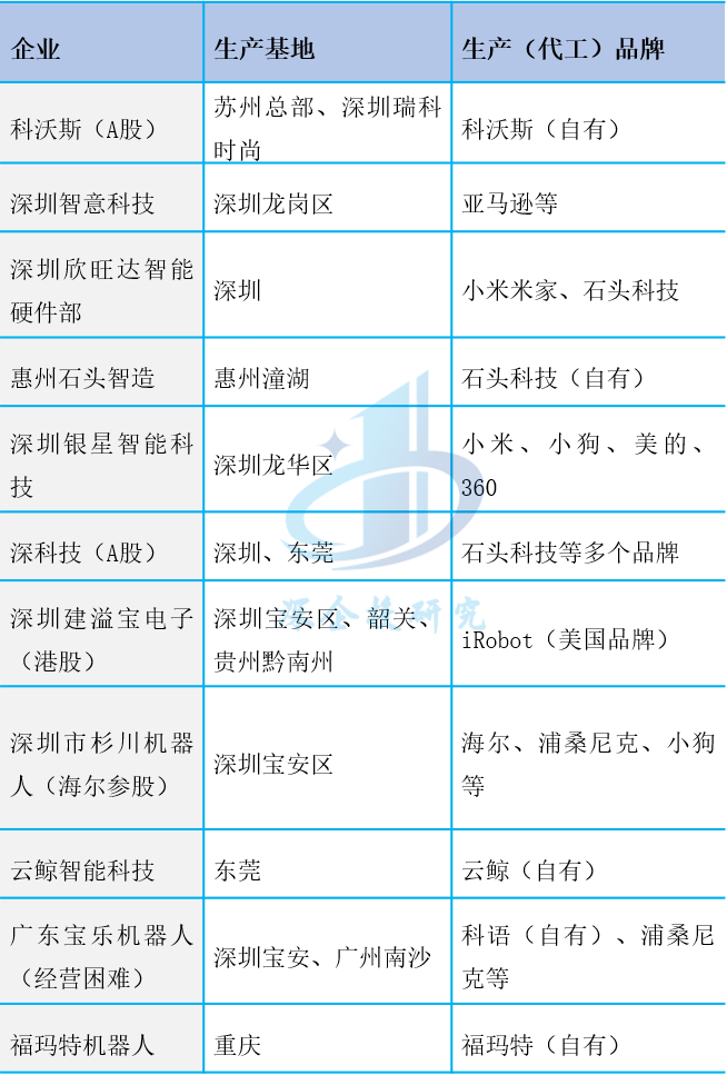 表1 国内扫地机器人主要生产基地