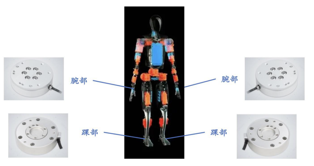 图6 特斯拉Optimus人形机器人中六维力传感器分布