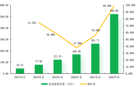 图5 2017-2022年中国大陆充电桩保有量