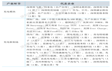 目前国内充电桩相关企业数量有300多家,行业竞争较为充分,多数企业充电桩制造的营收规模较小。充电模块及充电桩制造(装配)主要企业如下表所示。