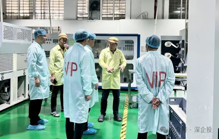 2024年4月25日,深企投招商运营总监姚超陪同惠州潼湖生态智慧区管委会招商部门对接深圳传感器芯片企业。