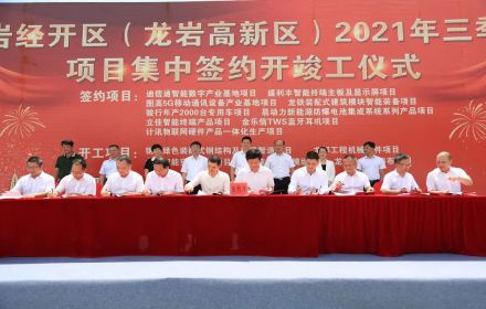 2021年8月24日上午,龙岩经开区(高新区)举行2021年三季度项目集中签约开竣工仪式。当天11个项目圆满完成开竣工仪式,其中龙龙智能穿戴产品生产项目和龙扬移动通信智能终端产品生产项目均由深投促引进。